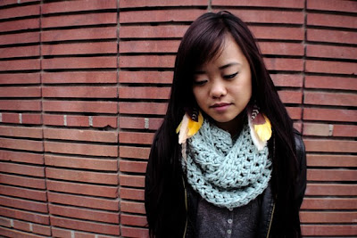 the giveaway is for a pair of feather earring from a really cute etsy shop called the soak tree, they have feather earrings and comfy looking scarves.